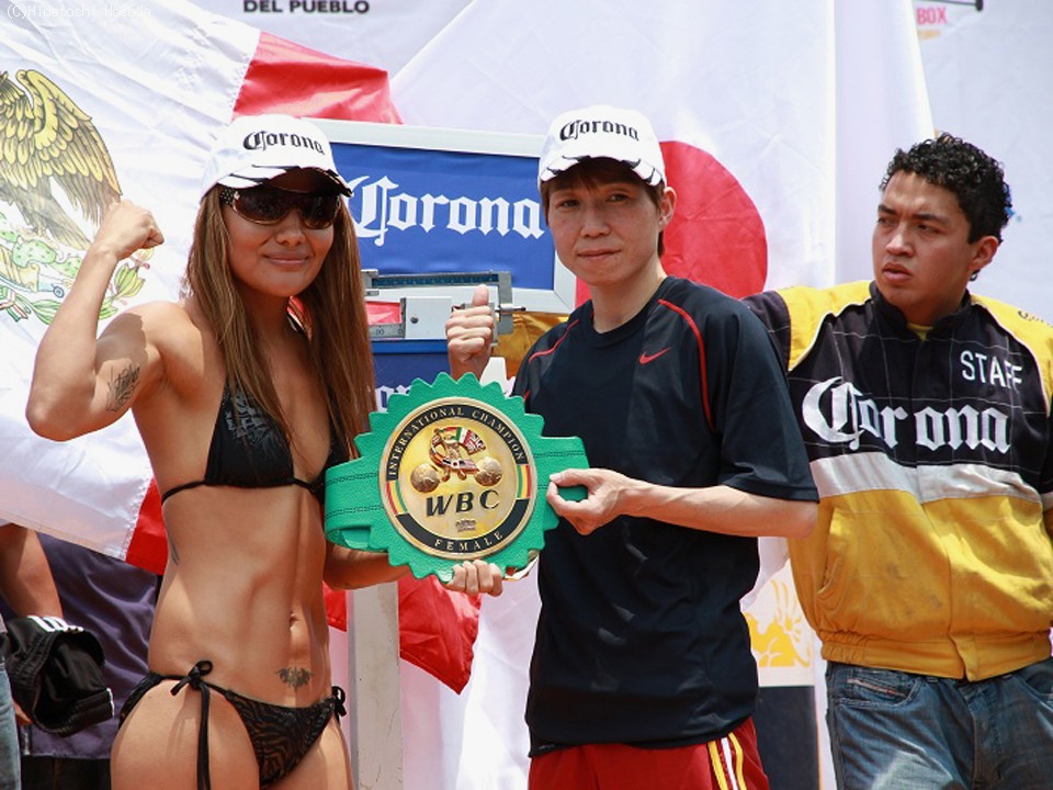 また、WBC女子世界スーパーフライ級挑戦者決定戦に出場するマリアナ・フアレスは114ポンド(約51.7キロ)、東郷理代(アルファ)は112.5ポンド(約51.0キロ)だった。オッズは19対1でフアレス有利と出ており、東郷の勝利には7.5倍の配当がついている。試合はプエブロ・プロモーションズの主催で行われ、テレビサで放送される。
