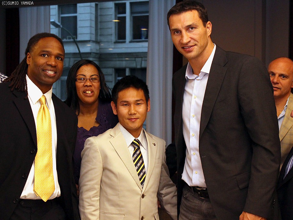 現IBF王者で出席したのは高山とクリチコのみで、最大王者と最少王者の貴重なショットが撮られた。
