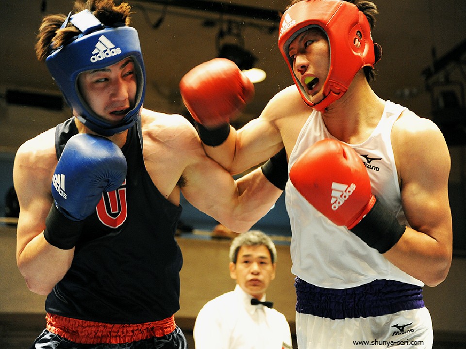 尚弥のいとこ、井上浩樹(右)がキック出身の三田を攻めまくって拓大勝利
