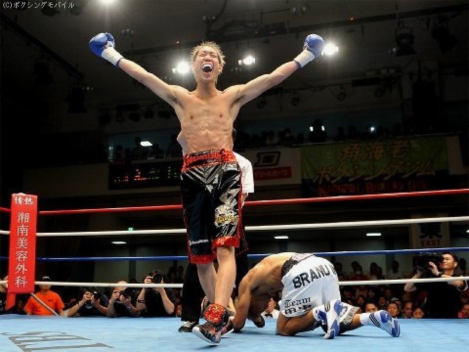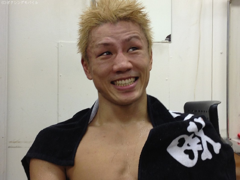 一方、高校時代のチームメートでもある井岡一翔、宮崎亮(ともに井岡)らとともに控室に戻った中谷は、しばらくは興奮冷めやらぬ様子だった。「倒したのは自然に出たパンチ。ジャブ突いて右から左ボディというパターンが得意なんですが、思っていた以上の出来でした。(土屋は)強い選手なのでプレッシャーがありました。KO負けしたらどうしようと思ったり、怖かった」と、試合前の胸中を明かした。ライト級の日本王座と東洋太平洋王座は土屋のジムメート、加藤善孝が持っているだけに、一気に挑戦ムードが高まった。「加藤選手はいい選手ですが、挑戦したいですね」と、早くも次の目標を口にした。戦績は6戦全勝(5KO)。