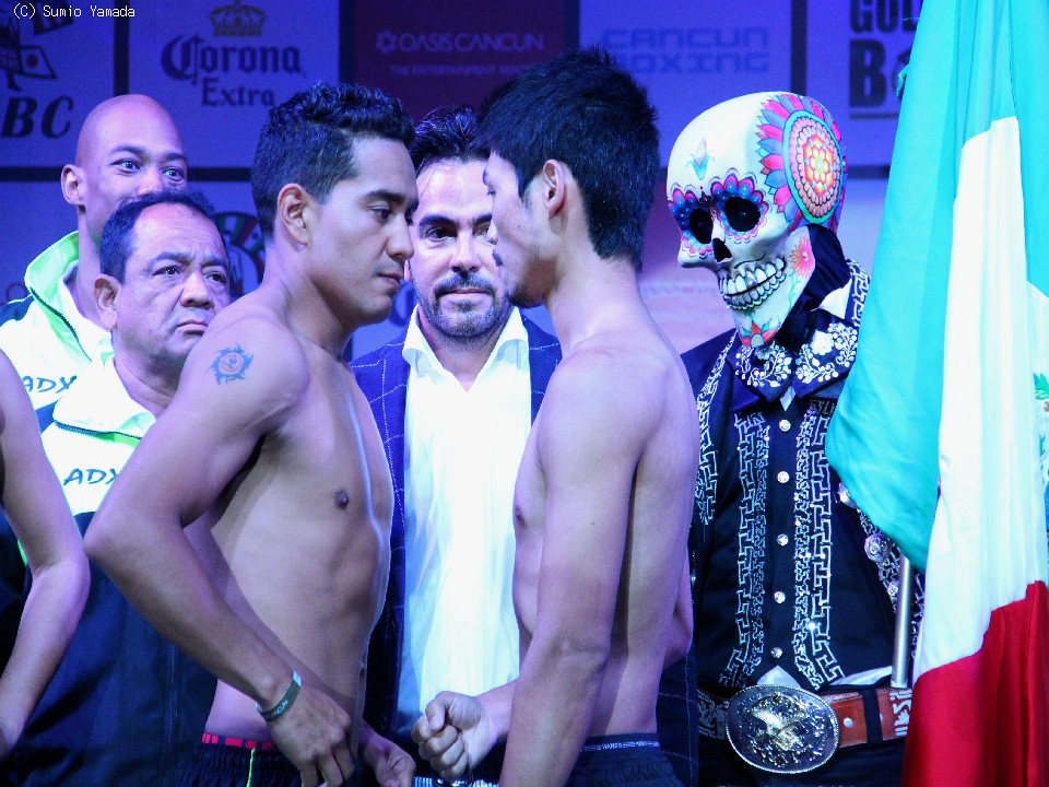 WBC世界スーパーフェザー級タイトルマッチを翌日に控えた16日(日本時間17日)、試合地のカンクン(メキシコ)で前日計量が行われた。初防衛を目指す王者の三浦隆司(29=帝拳)、同級1位の挑戦者セルヒオ・トンプソン(29=メキシコ)とも、1回で計量をクリアした。【相田早智】
