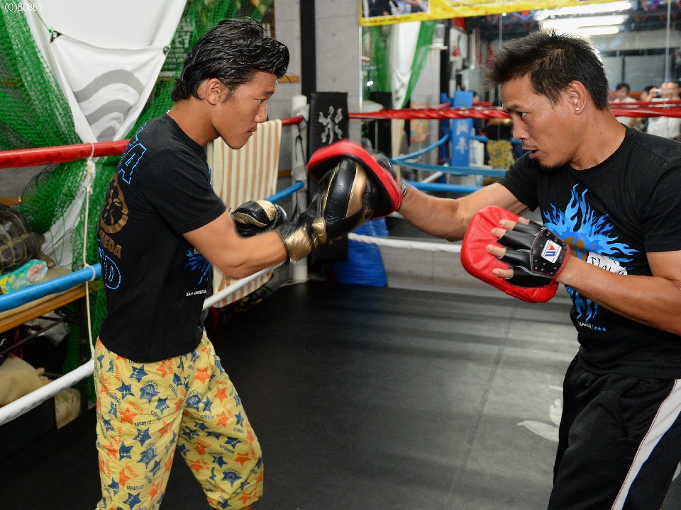 スーパーフライ級リミット体重まであと5キロという大毅は、リングに入ると軽めのミット打ちを披露し、プレッシャーをかけられた後の切り返しと上下左右に4つ5つとテンポよくパンチを打ち込むコンビネーションを確認すると早々にこの日の練習を終え、マッサージを受けた。