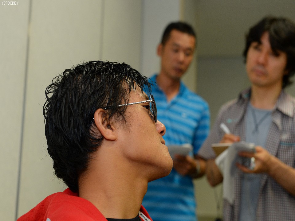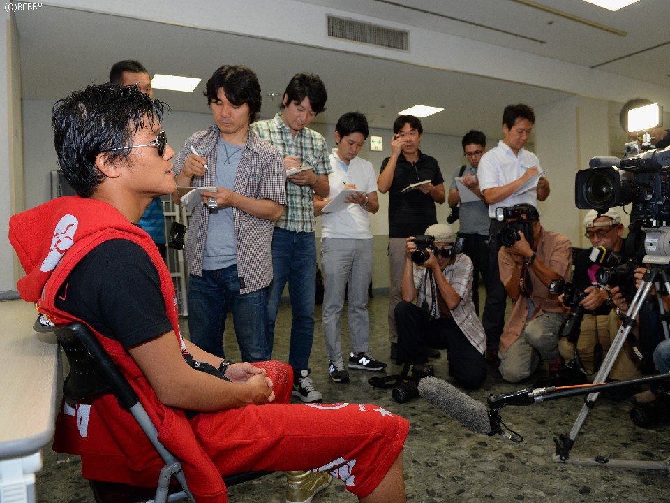 「身長が2年前の世界戦のときよりも1.5センチ減った。ジジイ化しているわ」と笑わせる場面もあったが、すぐに表情は硬くなってしまった。3兄弟同時世界王者という記録がかかっていることに話が及ぶと「3兄弟で面白い試合は俺しかできないやろ」と自負を口にした。試合に関しては「俺の力を出せるかどうか。焦らず落ち着いて戦えば結果は出るはず」と自分に言い聞かせるように話した。