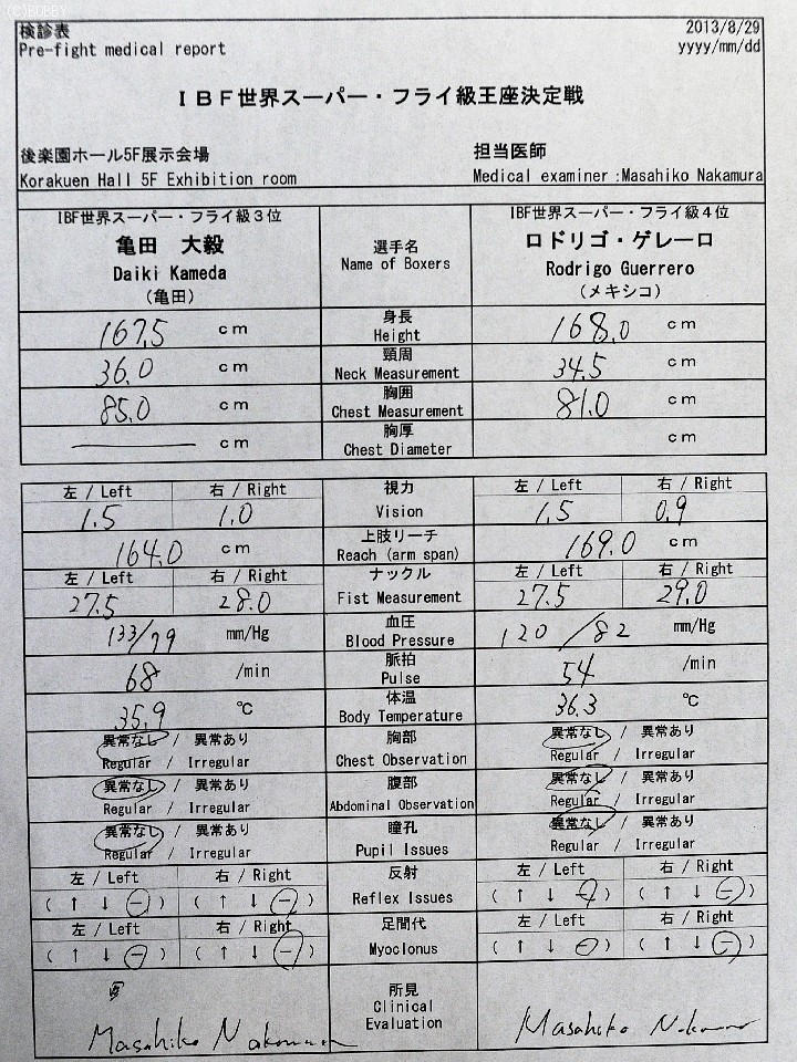 相手と顔を合わせないため検診は15分ずらして行われたが、囲み会見の終盤にゲレーロが記者陣後方に登場。大毅は引き揚げる際に元王者を睨んで会場を去って行った。