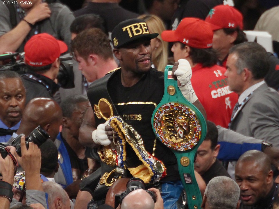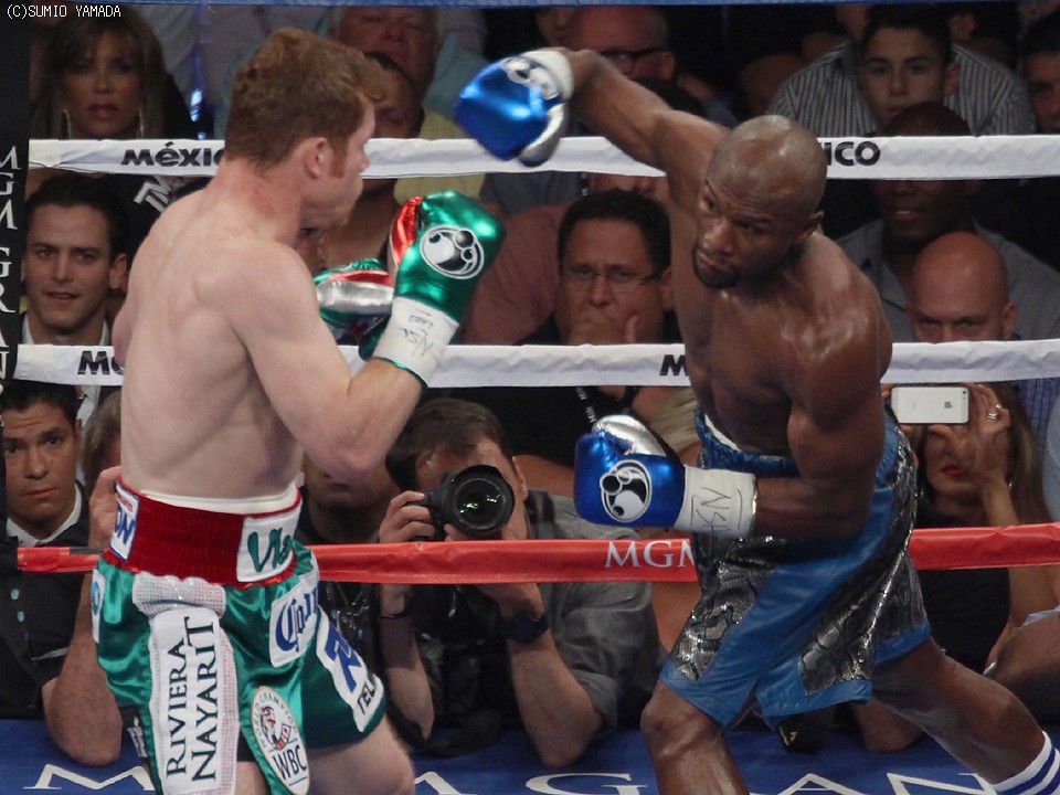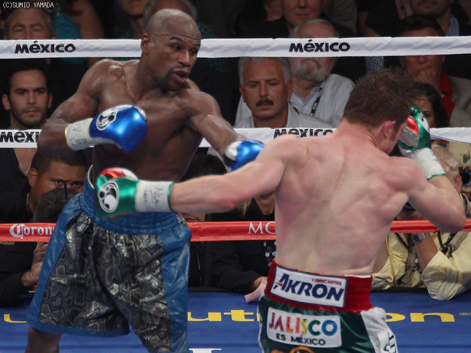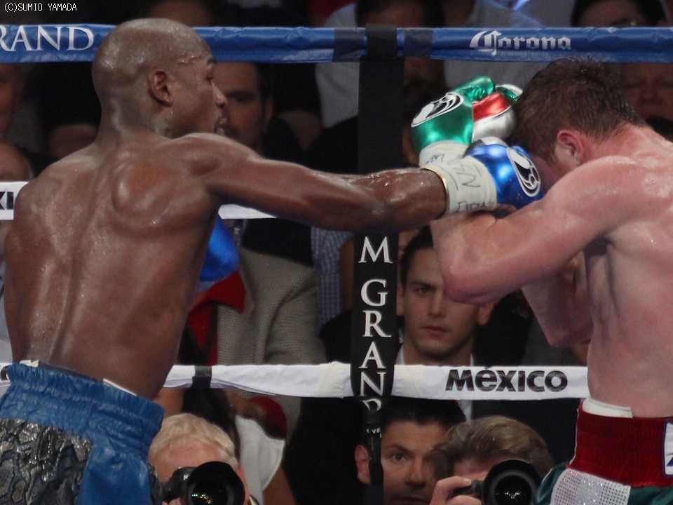WBA、WBC世界スーパーウェルター級王座統一戦、5階級制覇の実績を持つWBAスーパー王者、WBCダイヤモンド・ベルト保持者フロイド・メイウェザー(36=米)対WBA&WBCレギュラー王者サウル・アルバレス(23=メキシコ)の12回戦は14日(日本時間15日)、米国ネバダ州ラスベガスのMGMグランドガーデン・アリーナで行われた。THE ONE(頂上決戦)と銘打たれた史上最大規模のスーパーファイト。44戦全勝(26KO)のメイウェザー、43戦42勝(30KO)1分のアルバレス。はたしてレフェリーから手を挙げられたのは――。