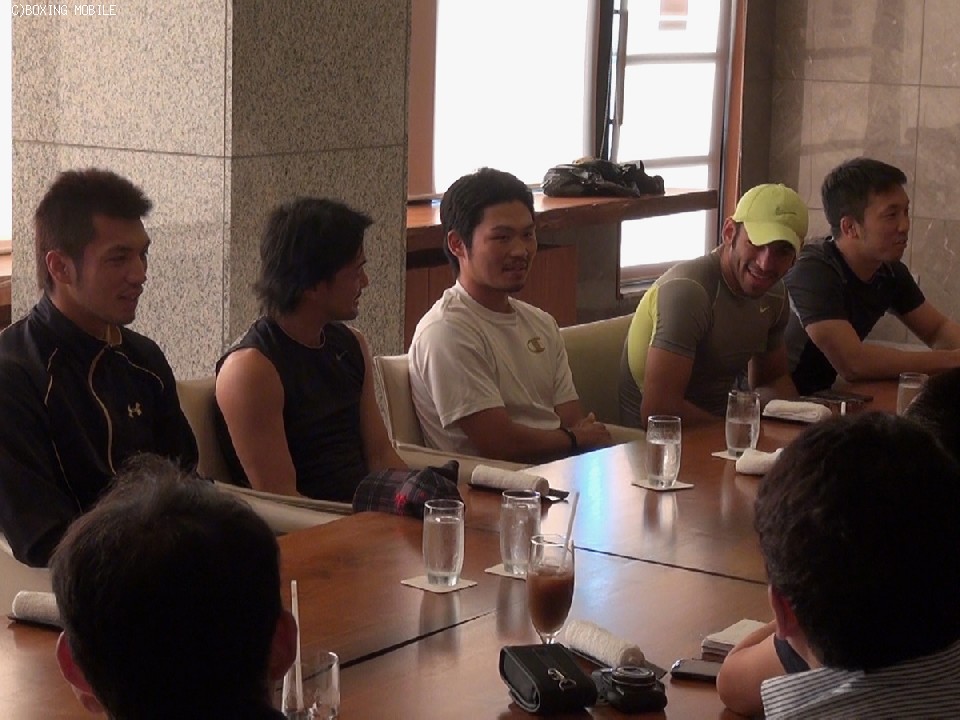 会見前、本田会長から各選手の試合日程の発表があり、11月に山中、リナレス、粟生が、12月に三浦、村田の試合を予定しているとのこと。また、リナレスと粟生は現在10回戦をみているが、タイトル戦の可能性もあることを明かした。村田選手について「来年は最低でも4試合行う予定、対戦相手は段階を踏んでしっかりと決めていくつもり」と話すと「来年の後半が勝負かな」と話した。