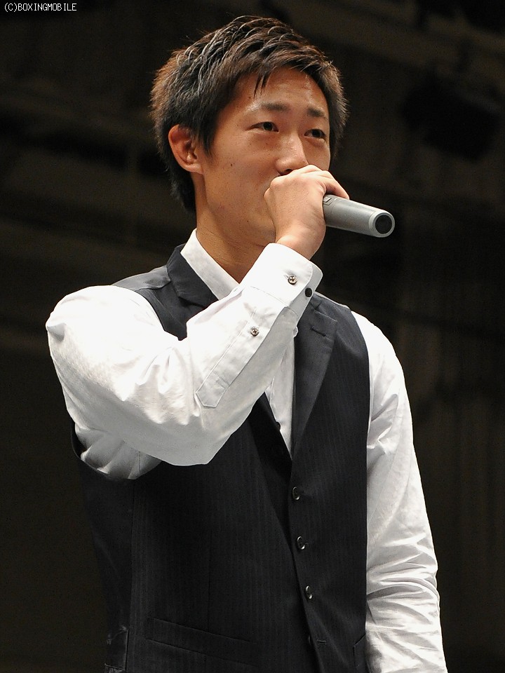 勅使河原 弘晶(輪島S) 「 次はA級トーナメントに出て6回戦で試合をします。まだ子供みたいなボクシングですが、精進して一気に上に駆け上がります」と笑顔で語った勅使河原 。