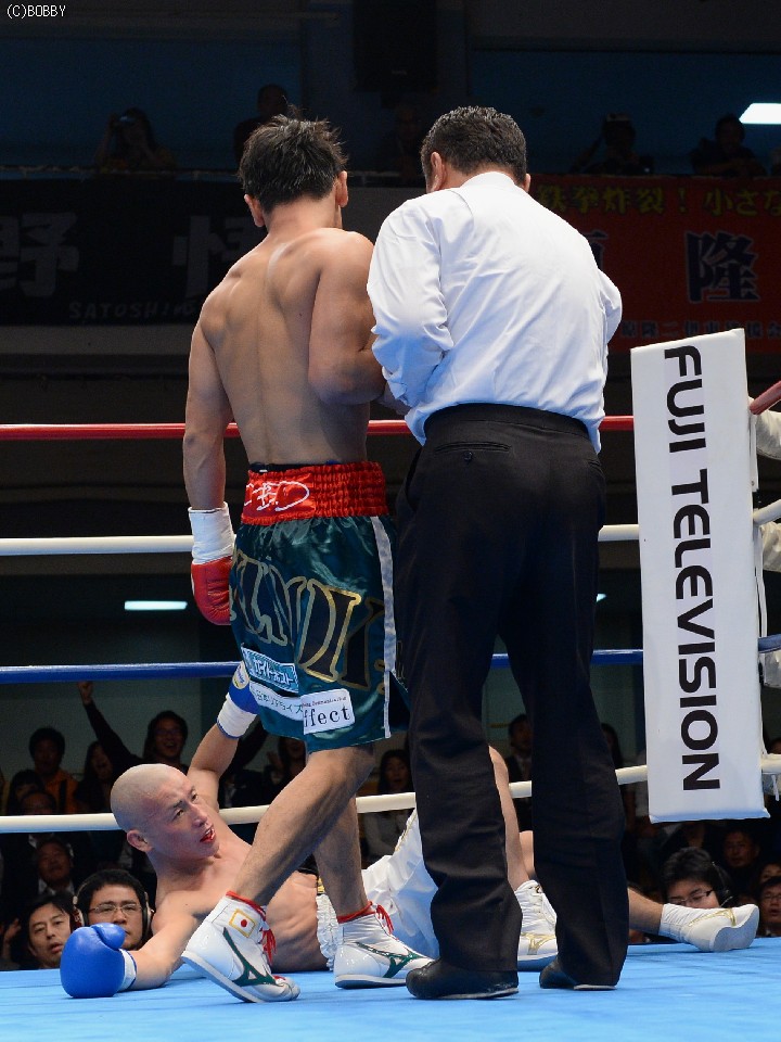 岡田の借りを返すべく、細野は初回からプレスをかけると、松田をコーナーに追い込み右ストレートから左フックを炸裂。これで崩れ落ちた松田に自陣からタオルが投入された。剛打を爆発させた細野が、初回156秒で再起をはたした。
