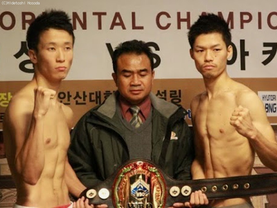 日本勢の計量は、メインイベントのWBOオリエンタル・スーパーバンタム級王座決定12回戦を戦う、日本フェザー級12位の片桐秋彦(川崎新田)を筆頭に、他4選手も一発クリアとなったが、韓国勢は、片桐の相手のイ・ジェソンが初回200gオーバーで通過できず、3回目でようやくクリアとなった。