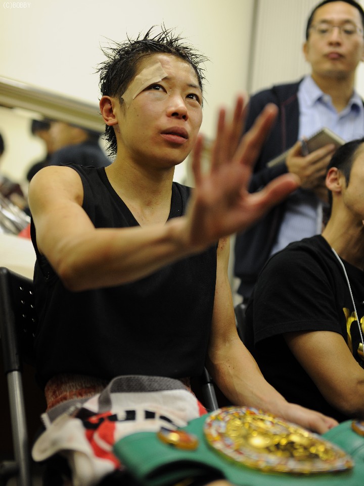 防戦記録を伸ばし控え室に戻った小関だったが、「久々にいい仕上がりだったのが出せてなかった」と意気消沈。試合内容について「パンチがある選手だった。カットして見づらかったが、相手も同じ。気持ちの強さを見せられたのが、唯一の見せ場だったかもしれないですね。男子とスパーリングをしてたのが良かったです」と静かに話した。有吉会長は、「最近では久しぶりに危機感をもっていた試合だった。勝ってホッとしてます。次のことは、まだ考えていません」と明かした。
