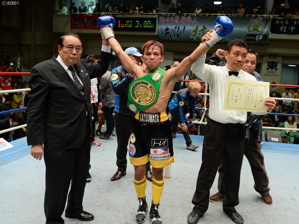 WBCユース世界スーパーフライ級タイトルマッチ10回戦が10日に後楽園ホールで行われ、挑戦者として挑んだフィリピンの輸入ボクサー、東洋太平洋バンタム級5位のジョビー・カツマタ(19=勝又)が王者のアンヘリート・メリン(比)に2RKO勝ちしタイトルを奪取した。