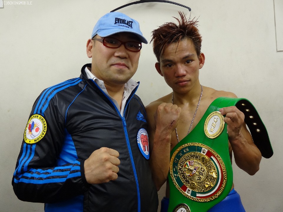 試合後、「ジムや家族、そして災害のあったフィリピンのために強い心で勝つことができて嬉しい」とコメントしたカツマタは、右の拳を痛めていたことが判明。痛み止めの注射を打って臨んだ勝利だった。来年は飛躍の年にしたいと、勝又洋会長とともに喜んだ。