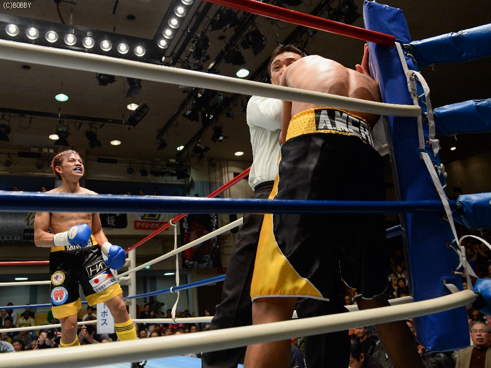 サウスポーのカツマタは初回に電光石火の左ストレートで王者からダウンを奪うと、2Rにも右フックでダウンを追加。その後も機を見てワンツー連打でメリンを棒立ちにさせスタンディングダウン、最後はロープ際で仰け反らせてのレフェリーストップを呼び込んだ。この試合はノースリーノックダウン制で行われた。カツマタはこれで10戦9勝(3KO)1敗。