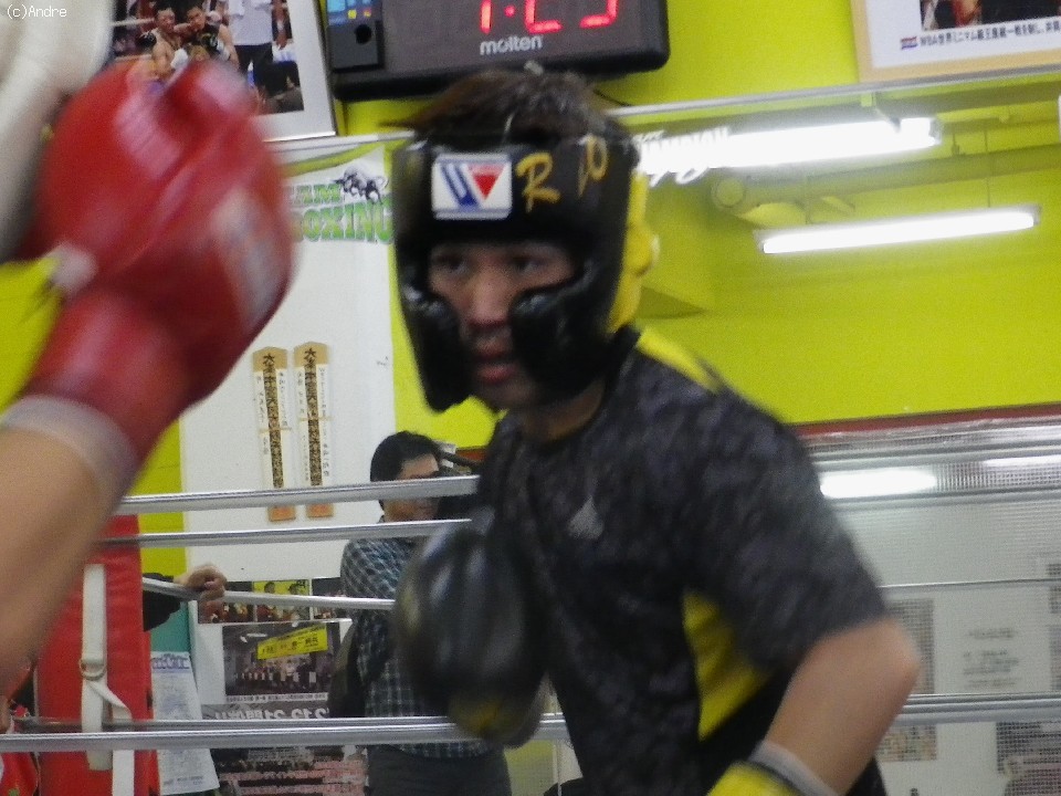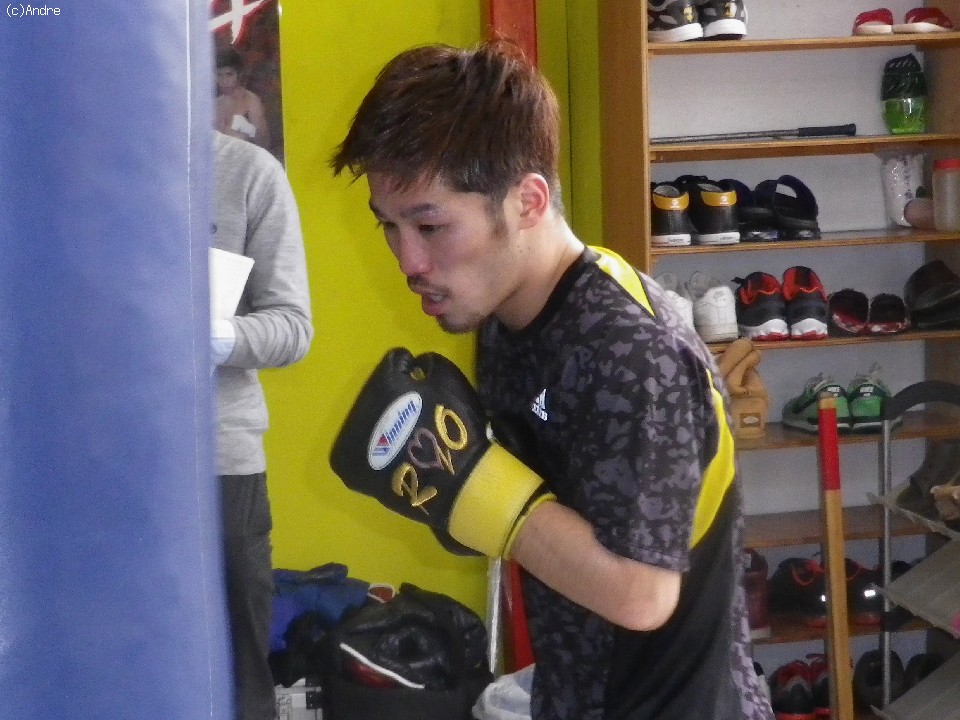 会見を終えた宮崎は、入念なウォームアップの後、同門の山本隆寛を相手に軽めのスパーリングを2R公開し、軽快な動きをみせた。その後はサンドバックを3R叩くとサウナスーツを着込みサウナルームでロープ飛びとストレッチで汗を流し、笑顔でこの日の練習を終えた。