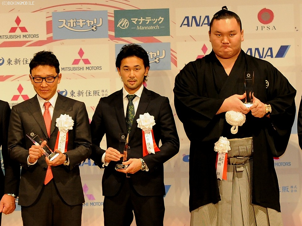 また引退をした佐藤は「場違い。表彰式の大きさにびっくりしました」と恐縮した様子。「井上君みたいな強い選手が出てきたから引退しました」と記者団の笑いを誘った。現在佐藤は、来年3月に地元の岩手県で開店する焼肉店の準備で大忙しとのこと。第二の人生も謳歌することを期待したい。