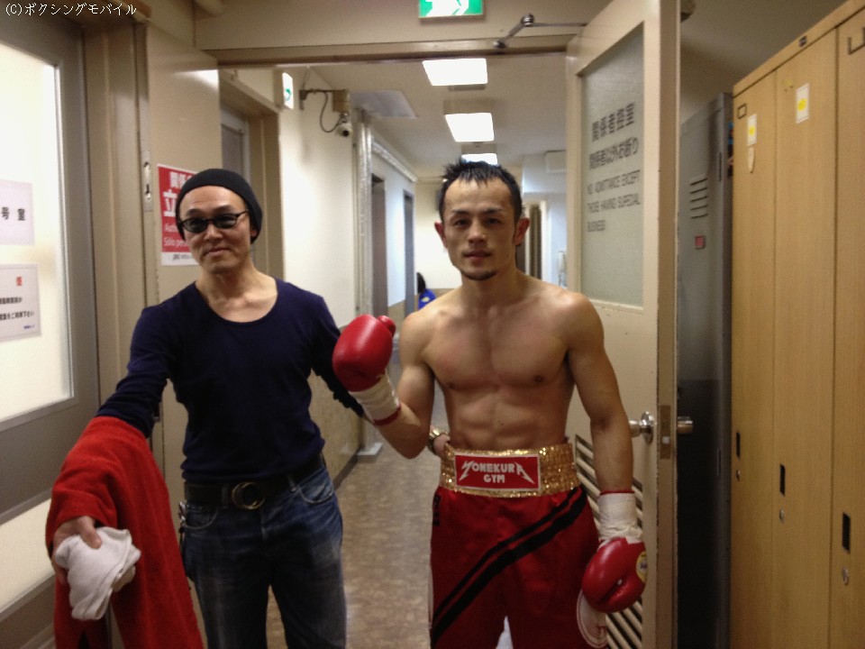 試合後の控え室に顔を出した純一郎は「三年八ヶ月ぶりの試合って感じでしたね」と、ノックアウト勝利にホッとした表情を浮かべた。そして「励みになる」と、兄弟でボクシングを続けられることを喜んだ。