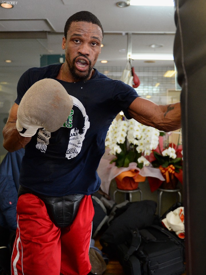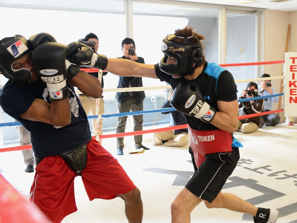 会見後には来日しているジョーンズと3ラウンドのスパーリングを披露。両ガードを高い位置に置き、その姿勢で体を振りながらリズムをとり、左ジャブから右ストレートという連携をみせた。ときおりパワーで押し込むシーンもあったが、「流れのなかで滑らかさが出せればいい」と言っていたように、折々で米国修行の成果をみせていた。このあとも村田はジムワークで最終調整を行い、試合4日前の18日午後に成田からマカオに向かう予定となっている。