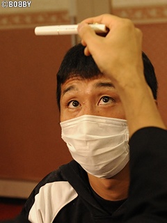 内藤から遅れる事約10分後に予備検診を行なった興毅。身長165.8cm、胸囲95.0cm、リーチ168.0cm、視力右2.0/左1.5、体温36.4℃、脈拍:40/min。