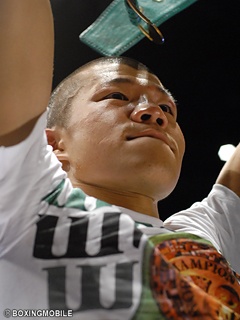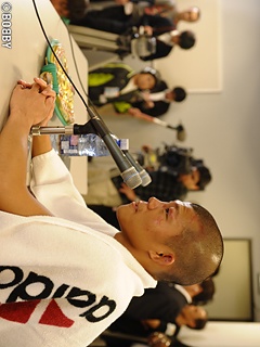 内藤の印象を尋ねられ「弱い選手じゃない。王座を5度防衛している強い王者。これまで言いたい事を言って来たが試合を盛り上げる為だし。もう(わだかまりは)何も無い。素直に有難うと言いたい」とし、内藤に再び感謝のコメント。ファンにメッセージをと尋ねられると「バッシングがあっても応援してくれた人達や後援会や皆さんに感謝の気持ちで一杯です。これからもっともっと練習し、偉大な王者になります」とこれまで応援してくれたファンに感謝の意を表した。