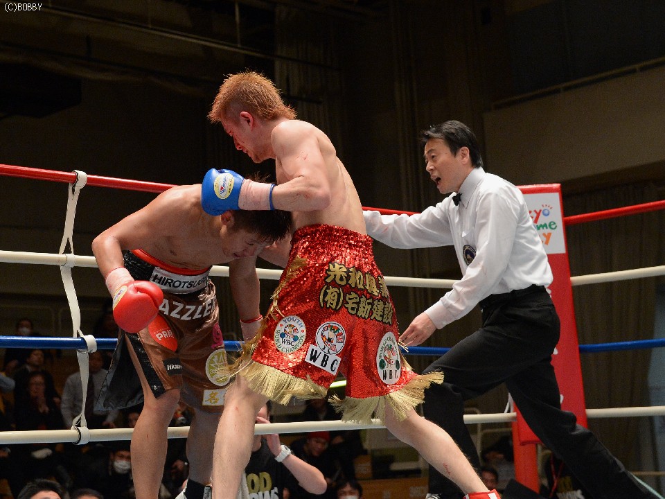 しかし6R、バッティングで斉藤が左目上を負傷。偶然のバッティングかと思われたが山元に減点が課せられた。再開後、斉藤は圧力を強め、7R終盤には右のショートを入れるが決定打にならず。このまま山元の逃げ切りかと思われたが、ドラマは最終ラウンドに潜んでいた。