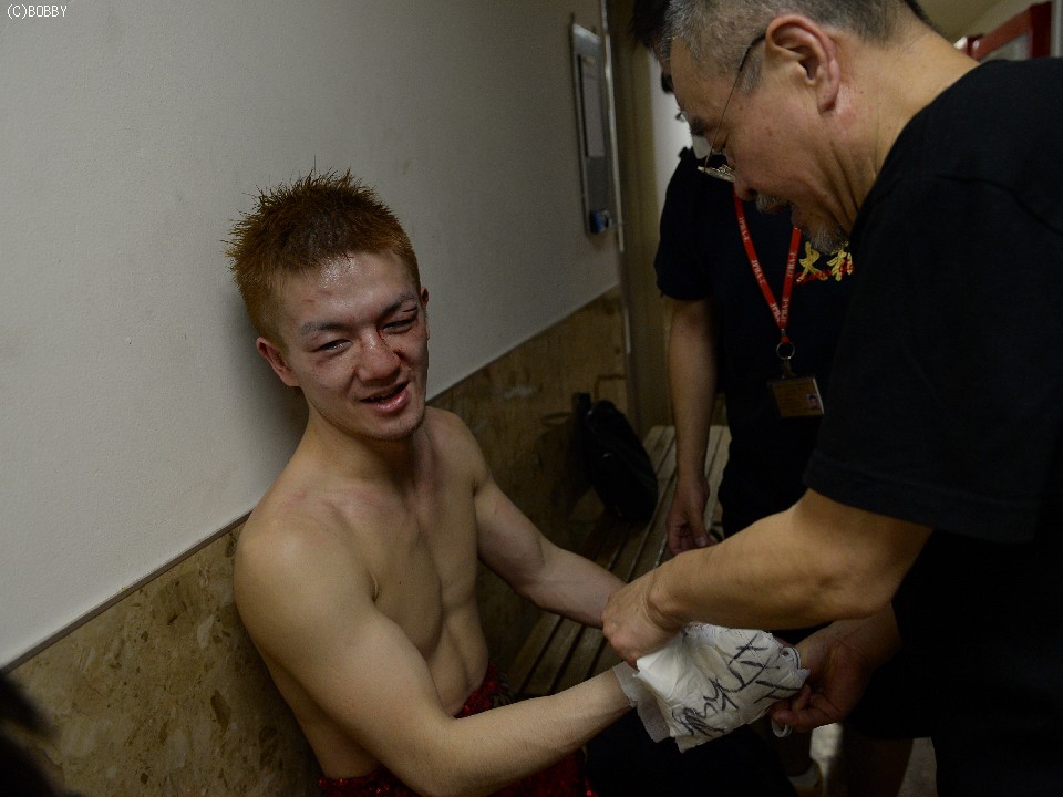 一方、斉藤の傷は10針を縫う深さだった。応急処置を終えた斉藤は「プレッシャーを掛けてボディは入っていたが、自分のリズムでボクシングをさせてもらえなかった。反省ばかりです」とコメント。倒した右フックには手応えがあったようだが、今日の勝利は「運と気持ちだけ」と、後味の悪い結末に唇を噛み締めた。