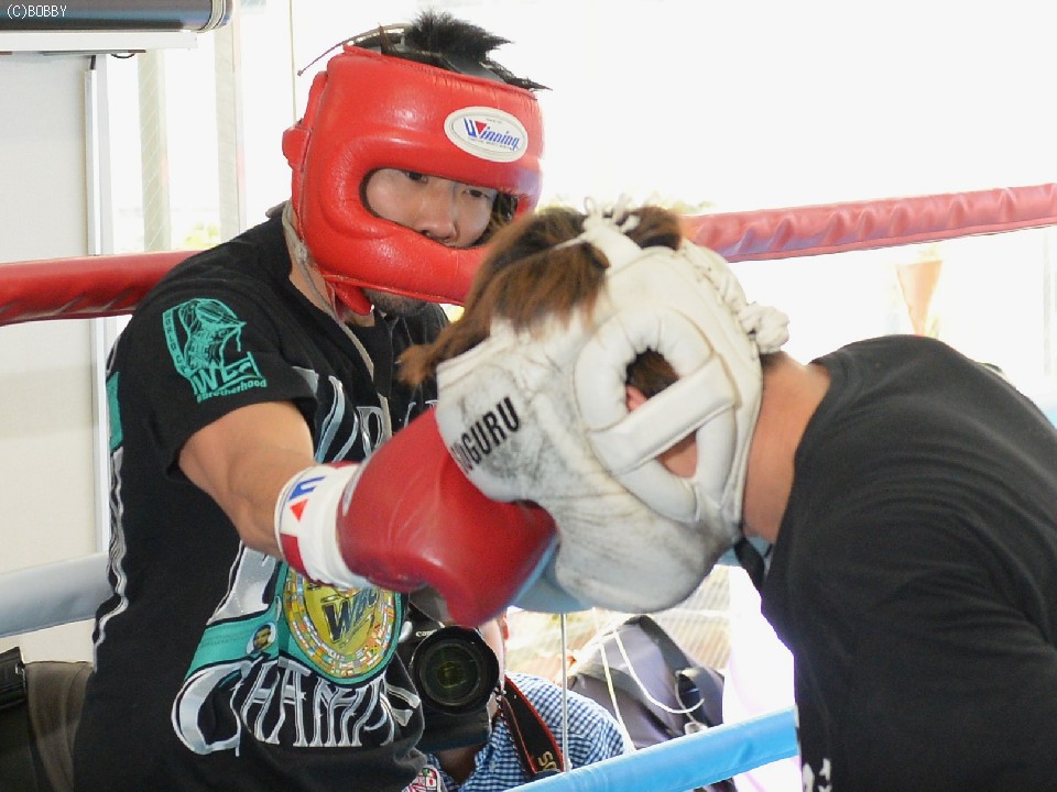 スパーリングパートナーを務めた村中は「パンチのスピードとパワーがすごかった。怖かったですよ。八重樫さんは、まだ疲れが抜けてないはずなのに足も使えていましたね。力の差を感じました」と、スパーした感想を口にした。ミニマム級時代の八重樫ともスパーリングをしたことがある村中は「パワーがアップしているのにスピードは全く落ちてない」と舌を巻いた。