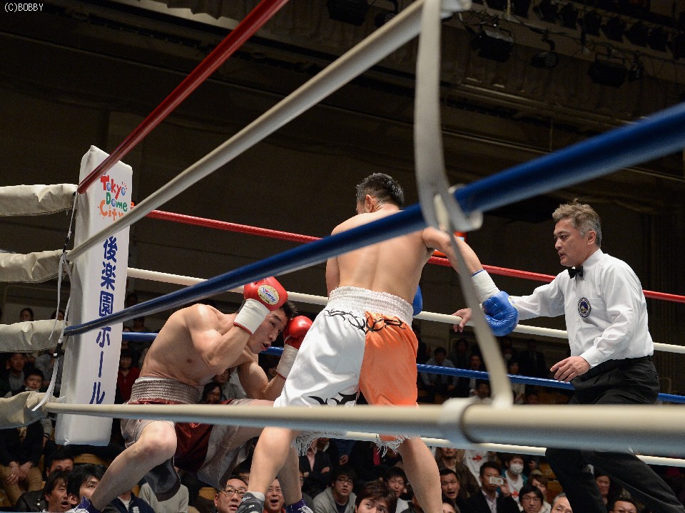 ワンツー、フックをガードの上から叩き込むと有川は堪えきれずにしゃがみ込み、同時にレフェリーが試合を止めた。1R1分9秒、坂本が約2年4ヶ月ぶりに白星を飾り、KO勝ちにいたっては約4年ぶりとなった。
