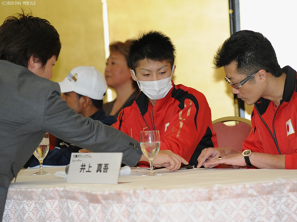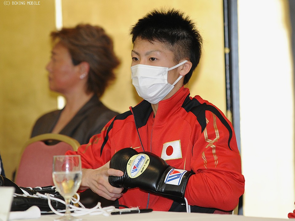 ジムの先輩でもある八重樫東と一緒にマスクを着けて登壇した井上は、減量の影響か眼窩が落ち窪んだ印象だった。それでもマイクを手にすると高揚した様子も見せず、「コンディションはバッチリ」と落ち着いて話した。