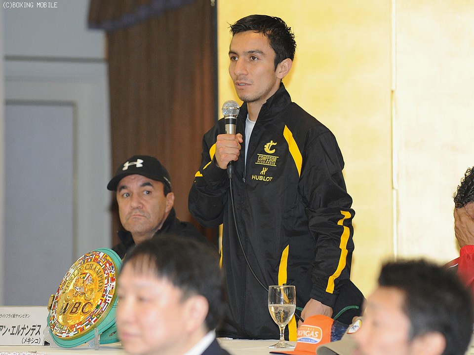 これに対し5度目の防衛戦となるエルナンデスは「映像で見た井上は強い印象だが、練習の成果を出し切り勝ってメキシコに帰る。全力で試合に臨む」と、こちらも表情を崩すことなく決意を語った。