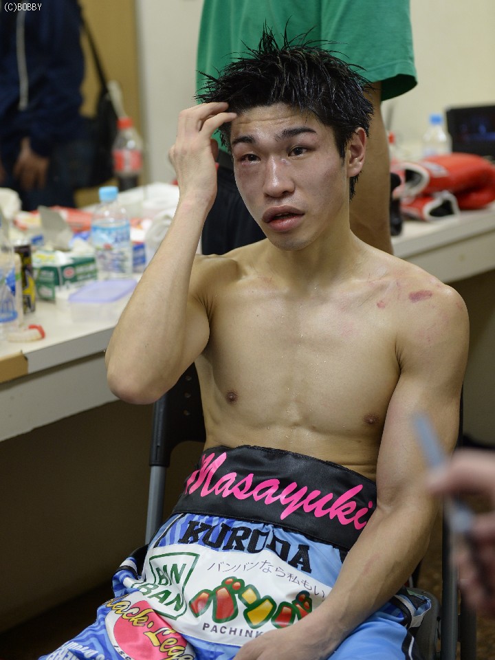 控室に戻った黒田は「自分のいたらなさと相手が強かった結果です」と完敗を認めた。試合内容について「左をついていく作戦だった。終始、自分では対処できているつもりだったが、採点をみる限り見栄えが悪かったんだと思う。最終ラウンドに連打で倒されて、自分にダメージが蓄積してたと感じました」と明かした。村中について黒田は、「コンパクトにタイミング良く打ってくる良い選手でした」と敬意を表した。最後に黒田は「僕自身ボクシングが好きなので、これからもチャンピオンを狙っていきたいです」と決意を語った。