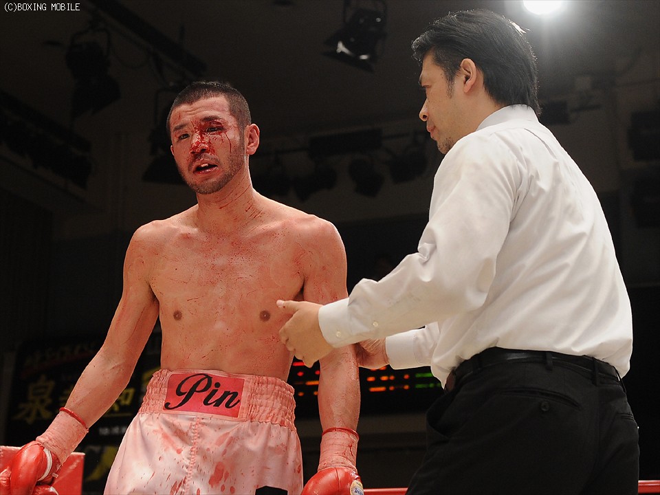 高畑は無類のタフネスを誇る泉に一歩も引かず、ボディを効果的に攻め続けた。7Rに泉が左目上を負傷し、8Rに傷が悪化。高畑陣営はヒッティングと主張したが偶然のバッティングと判断され、ドクターチェック後に続行不能の負傷判定となるも、2者から77-76、79-75で支持され勝利。