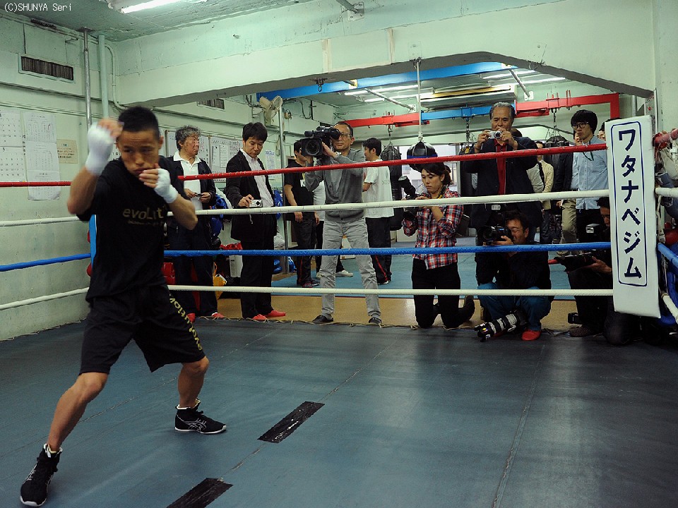 5月7日、大阪のボディメーカーコロシアムで高山勝成(30=仲里)の保持するIBF世界ミニマム級王座に挑む小野心(31=ワタナベ)が、東京・五反田のワタナベジムで公開練習を行い、敵地での初挑戦への胸中も語った。