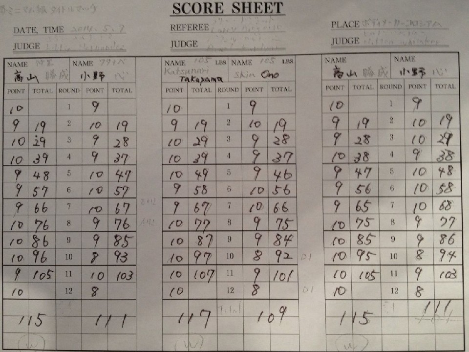 高山vs小野 採点表