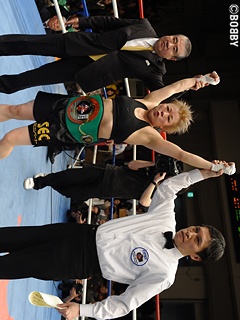 20日、後楽園ホールで行われた東洋太平洋女子スーパーフライ級タイトルマッチ10回戦、注目の日本女子対決は、挑戦者・同級1位・山口直子(具志堅)が王者・藤本りえ(協栄)を9R1分55秒TKOで下し、悲願のタイトル獲得に成功した。