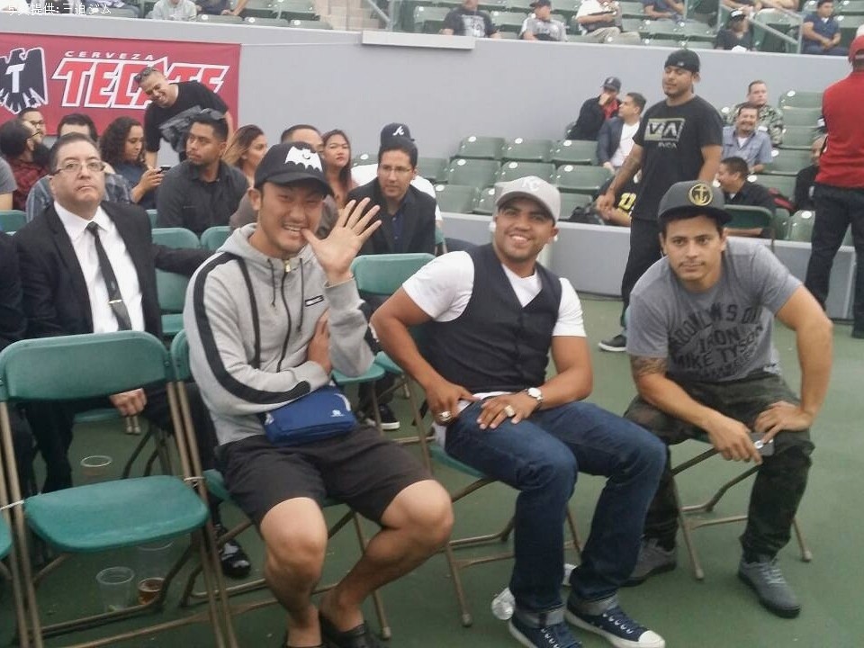 米国ロサンゼルスで合宿中のOPBFスーパーライト級チャンピオン小原佳太(三迫)が28日、スパーリングで汗を流した後にWBO世界ウェルター級王座決定戦、ティモシー・ブラッドリー(米)VS ジェシー・バルガス(米)の一戦を観戦に訪れている。
