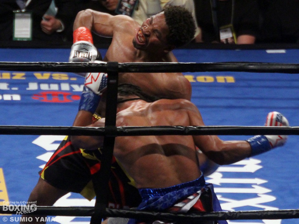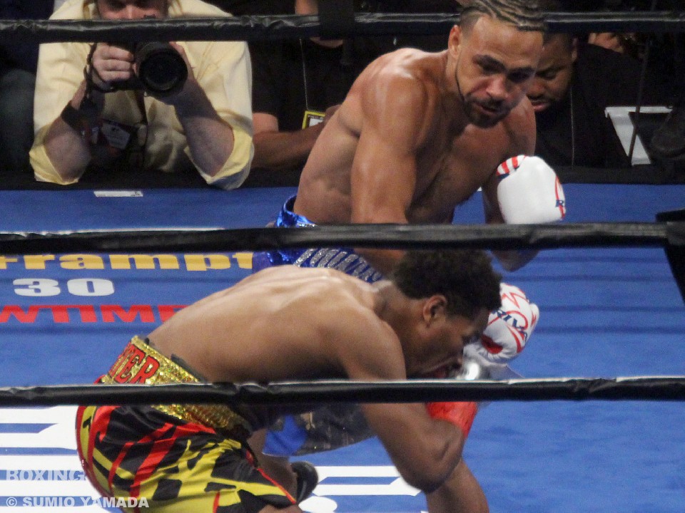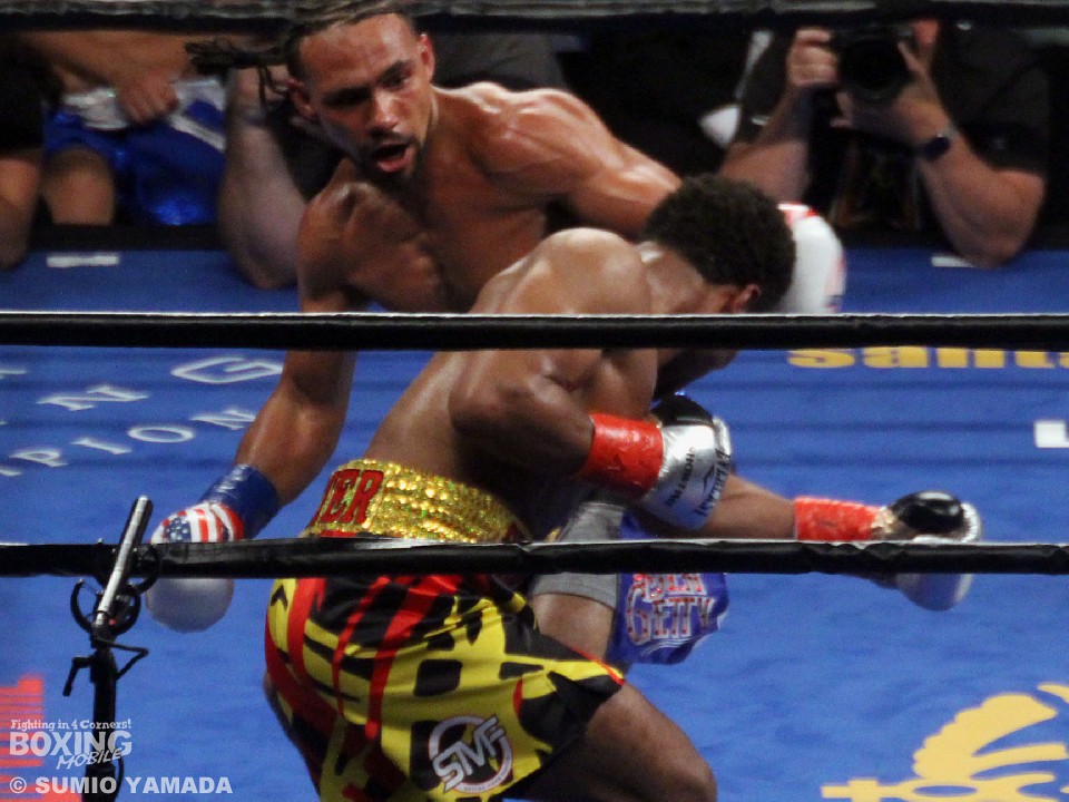 手数のポーター、正確なパンチのサーマンという展開で拮抗したままラウンドは進んでいった。8回、ポーターのボディブローで王者が守勢にまわり、9回には左目上をカット、苦しい状況に追い込まれたかと思われた。