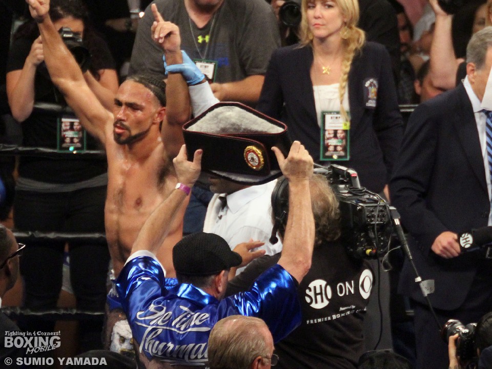 採点は三者とも115対113でサーマンの勝利を支持していた。暫定王者時代から数えて6度目の防衛を果たしたサーマンは28戦27勝(22KO)1無効試合、ポーターは29戦26勝(16KO)2敗1分。