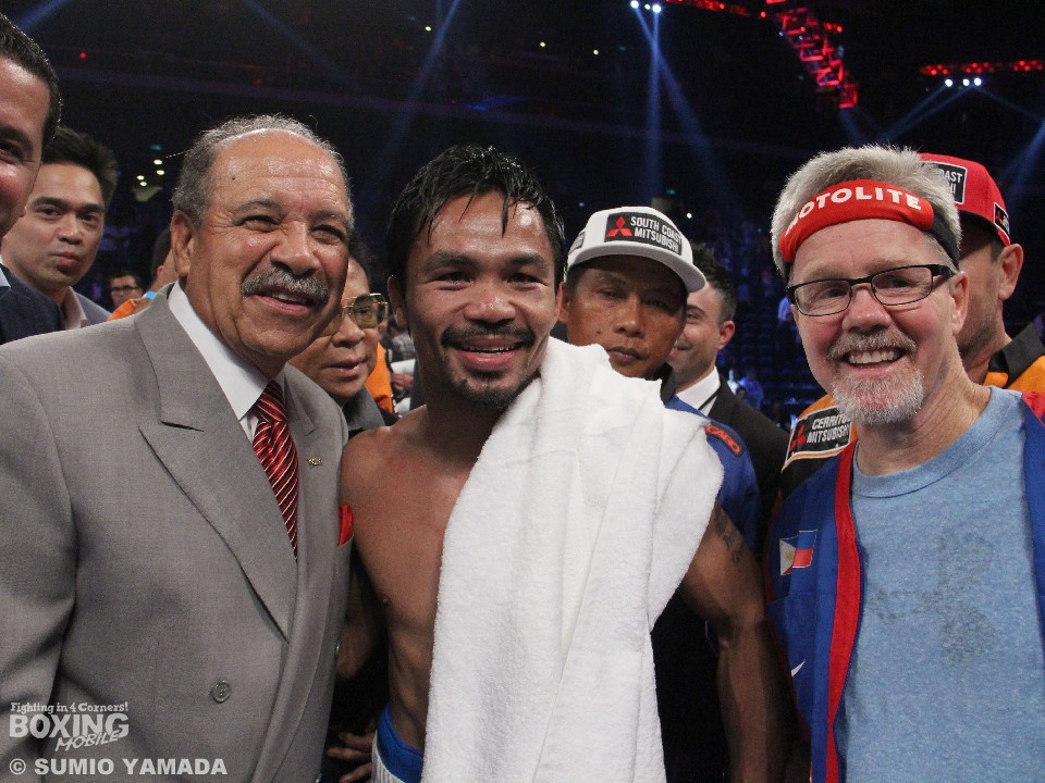 パッキャオは4月23日にオーストラリアでWBO2位のジェフ・ホーン(豪)と戦う計画があったが、2月に入っても話は進展せず、代わってカーン戦が浮上していた。UAEの投資家は3800万ドル(42億5000万円)の金額を提示してイベントを招致していると伝えられ、ここに来て逆転となったようだ。開催地はドバイかアブダビが有力という。カーンは2008年から12年にかけてフレディ・ローチ・トレーナーに師事したことがあり、その間、同じローチ門下生のパッキャオとスパーリングをした経験を持つ。「パッキャオとのスパーリングは常に危険なものだった」とカーンは話している。12年にローチのもとを去り、以後はバージル・ハンター・トレーナーとコンビを組んでいる。昨年11月にジェシー・バルガス(米)を下してWBOウェルター級王座に返り咲いたサウスポーのパッキャオは67戦59勝(38KO)6敗2分。カーンは昨年5月にミドル級に上げてサウル・カネロ・アルバレス(メキシコ)の持つWBC王座に挑んだが6回KO負けを喫しており、これが再起戦となる。35戦31勝(19KO)4敗。オッズは11対5でパッキャオ有利と出ており、カーン勝利の配当は2倍となっている。正式発表を待ちたい。