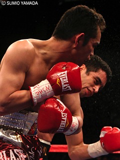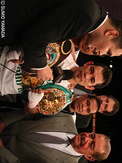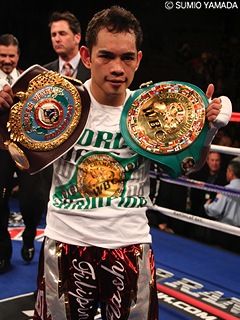 ふたつのベルトを携えて会見に臨んだドネアは「以前から2ラウンドにKOすると言っていたけれど、正直言って本当にこんなに早く倒せるなんて意外だった。倒した左はパーフェクトな一発だった。私がスーパースターかって? いや、自分ではそんなこと思ってもいないし、そういうことはみんなが決めることだしね。今後についてはキャメロン・ダンキン氏(マネージャー)と相談しながら決めていくことになると思う。将来的にはバンタム級だけでなく、135ポンド(ライト級)まで可能性を探っていきたい」。