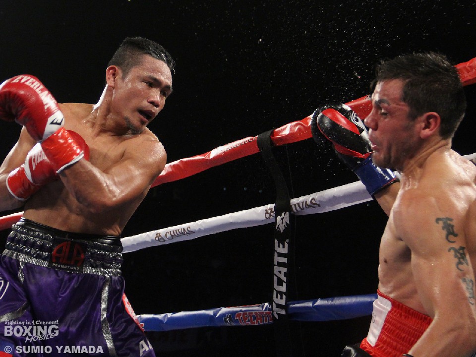 ニエテス対レベコのIBFフライ級タイトルマッチは、ベテラン同士の対決とあって比較的静かな立ち上がりとなった。互いに警戒心が強いのか派手なパンチの交換にはならず、場内からは焦れた声も漏れ始めた。そんな矢先の6回、試合は大きく動いた。それまでもやや優勢だったニエテスが右のカウンターを浴びせて挑戦者の足をふらつかせたのだ。続く7回、勝負に出たニエテスは相手をロープに追い込んでおいて左フックをヒット、ダウンを奪った。レベコは立ち上がったが、ダメージは明らかでコーナーがレフェリーにストップを要請した。初防衛に成功したニエテスは46戦41勝(23KO)1敗4分。元ライトフライ級、フライ級王者のレベコは43戦39勝(19KO)4敗。