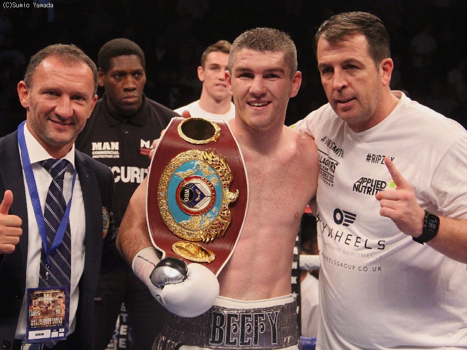 一方、元WBO世界スーパーウェルター級王者のリアム・スミスは15年10月にジョン・トンプソン(米)相手にTKO勝利で王座に就き、V1を果たした後に16年米国にてサウル"カネロ"アルバレス(メキシコ)の挑戦を受け、9回KO負けキャンバスに沈んだ。その後、17年4月にリアム・ウィリアムス(イギリス)とWBO同級暫定王座決定戦のチャンスを得るも、スミスが前日の計量で体重超過により失格、試合は接戦の中、バッティングで右目上を切ったウィリアムス陣営は10回開始前に棄権を申し出て、スミスの9回終了TKO勝利となっていた。