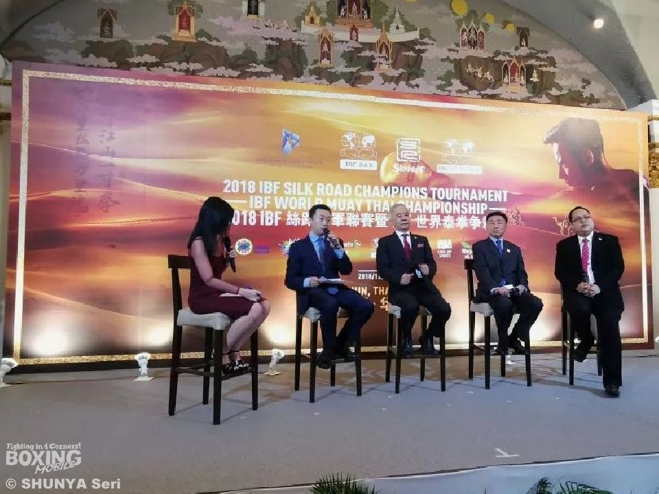 IBF(国際ボクシング連盟)の中国運営を委託されたリジョイ・グループによる「IBFチャイナ」は、14日にタイのバンコク市内で会見を開き、「一帯一路」を意識したIBFシルクロード・トーナメントの準決勝戦を、12月8日にタイ中部のホアヒンで開くことを発表。日本人選手では竹中良(三迫)のスーパーフェザー級のエントリーが確定となった。同トーナメントは、IBF世界ムエタイ選手権との合同開催となる。