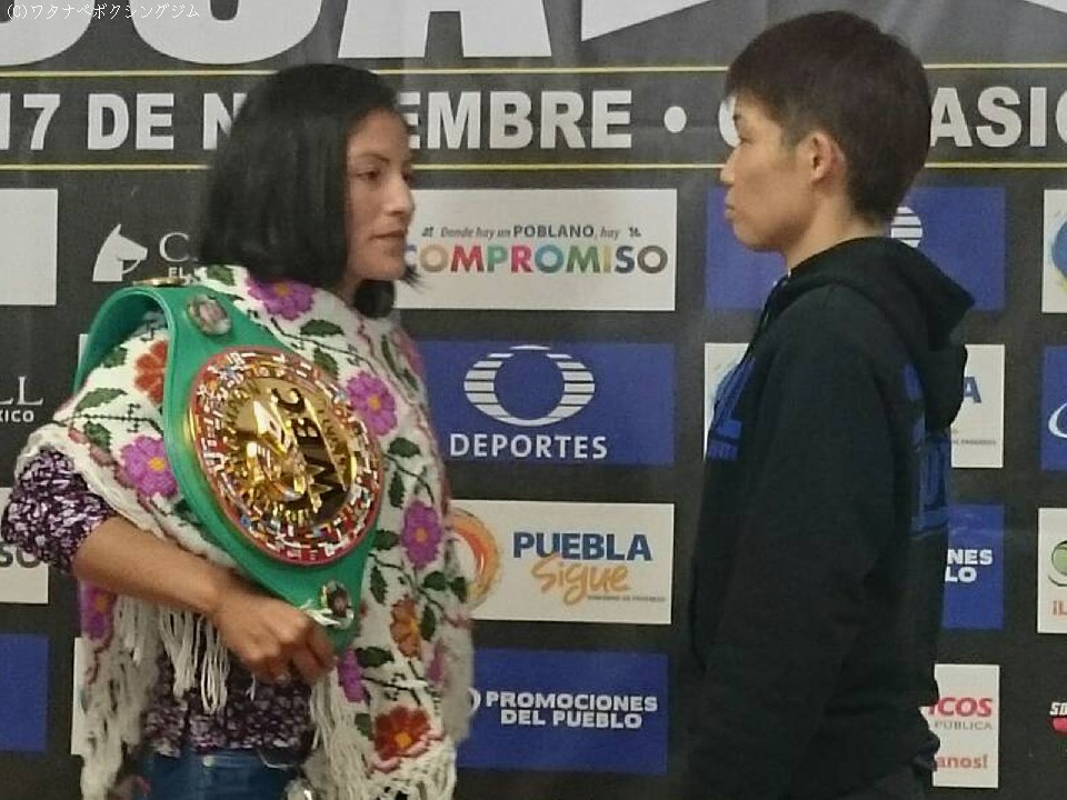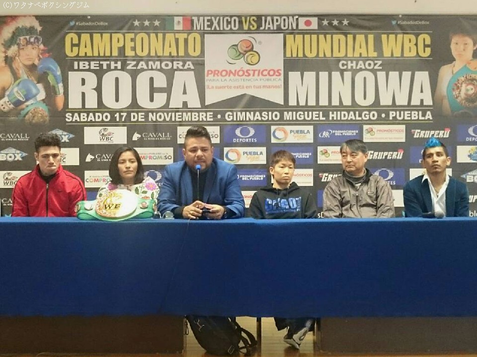 OPBF東洋太平洋女子フライ級王者のチャオズ箕輪(ワタナベ)が17日(日本時間18日)、メキシコ・プエブラ州プエブラでWBC(世界ボクシング評議会)女子フライ級王者のイベス・サモラ・シモラ(メキシコ)に挑戦する。その記者会見が日本時間16日に現地で行われた。