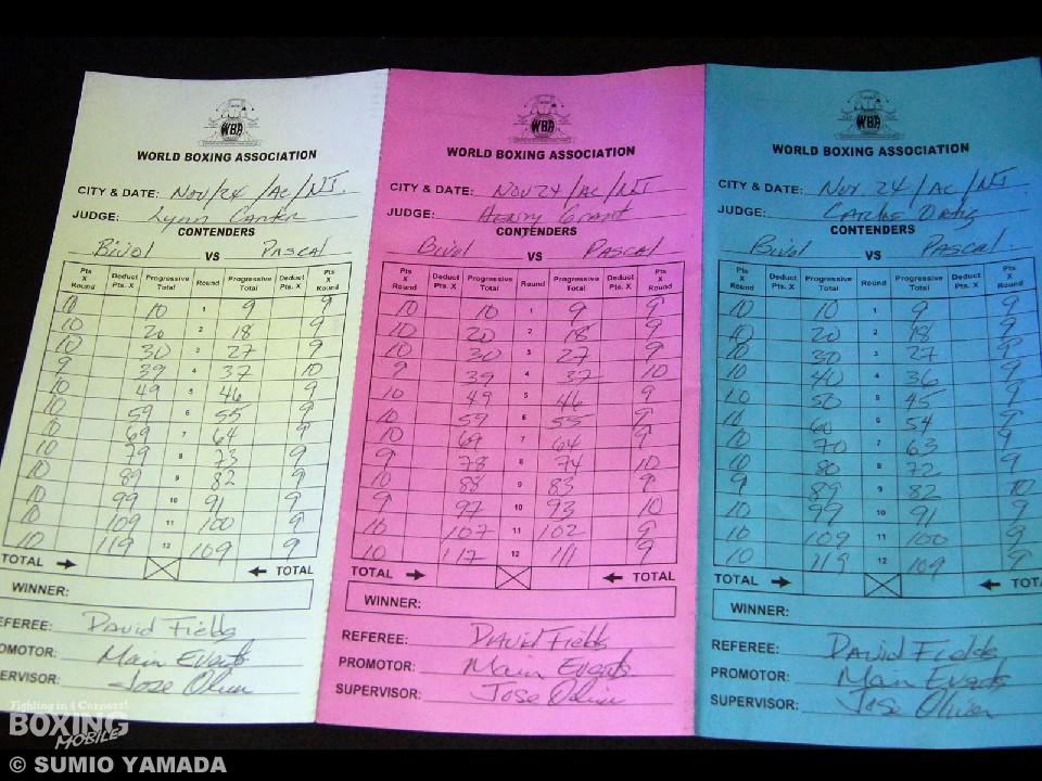 試合は王者ビボルが序盤からペースを掌握。ワンツー、フックと挑戦者パスカルの顔面を捉え、4回には右フックで倒すも、スリップと判断。その後もビボルのラウンドが続いたがパスカルは連打で攻勢に出る場面を作った。終盤もポイントはビボルが奪っていくも、元王者の意地を見せるパスカルの粘りもあり結果は判定へ。3-0(117-111, 119-109×2)で王者ビボルが暫定王者時代を含め6度目の防衛に成功した。統一戦を目指すビボルの戦績は15戦全勝(11KO)、王座返り咲きならなかったパスカルは41戦33勝(20KO)6敗1分1無効試合となった。