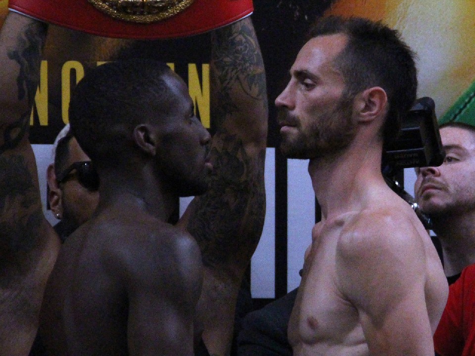 セミファイナルで行われるIBF世界スーパーフェザー級タイトルマッチ。ファーマーは同級リミットの58.9kgを100gアンダーの58.8kgで合格。対するフレノイスは200g軽い58.7kgでクリアした。昨年8月に同王座を決定戦で獲得して以来、早くもV4戦を迎えるファーマー。長身のフレノイスを相手にファーマーの変則スタイルが冴え渡るのかに注目だ。