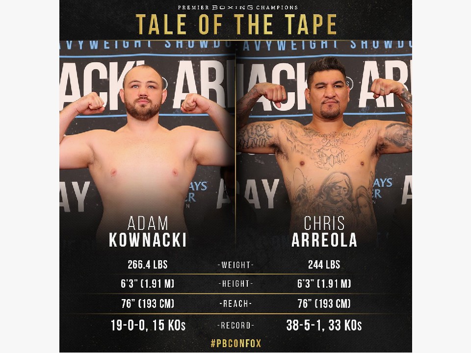 新旧ヘビー級対決となった対戦、地元ニューヨーク・ブルックリンでコウナッキーは120.8kgを記録。対する3度の世界挑戦経験を持つアレオーラは110.6kgをマークし、両選手の体重差は約10.2kgとなった。現在IBF(国際ボクシング連盟)4位、WBC(世界ボクシング評議会)6位、WBA7位と世界ランクを着実に上げているコウナッキー。昨年9月に元同級世界王者チャールズ・マーティン(米国)戦を判定勝利を収めている。対するアレオーラは16年7月にWBC同級王者デオンタイ・ワイルダー(米国)へ挑戦するも8回終了TKO負け。しかし、その後2連勝で今回のサバイバル戦に挑む。