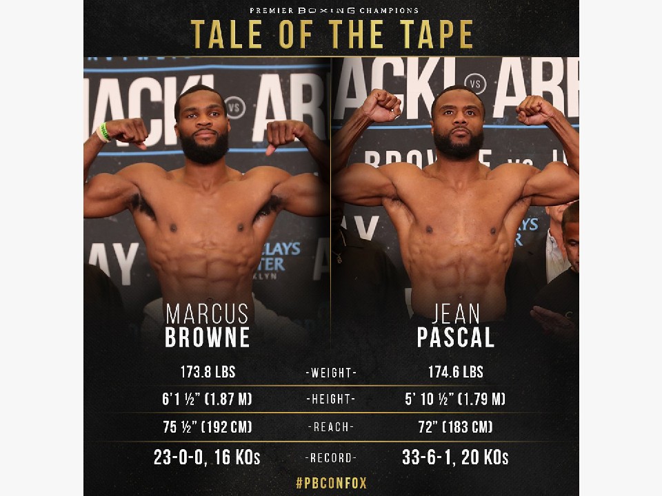 WBA世界ライトヘビー級暫定タイトルマッチは、同級リミットとなる79.3kgを暫定王者ブラウンは500gアンダーの78.8kgで合格。元WBC同級王者のパスカルは200g少ない79.1kgで秤を下りた。ブラウンは今年1月にパドゥ・ジャック(米国)と空位の暫定王座を争い判定勝利で世界初戴冠、今回が初防衛戦となる。対するパスカルは昨年11月に同級正規王者のドミトリー・ビボル(ロシア)に大差判定負け。ここ数年は勝ち負けを繰り返す中、再起戦で再び世界挑戦を行う。