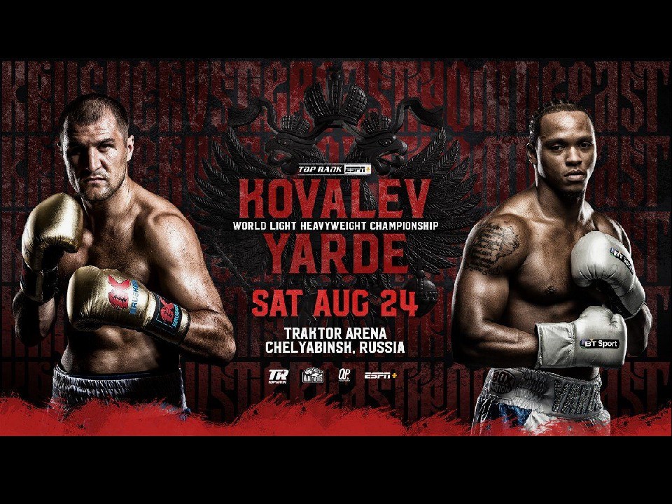 元同級3冠統一王者のコバレフは今年2月、エレイデル・アルバレス(コロンビア)を判定で敗り、リベンジとともにWBO同級王座を3度目の獲得をした。対する18戦全勝(17KO)のヤードは、WBO同級の欧州&インターコンチネンタルの両王座を防衛しながら指名挑戦者の位置まで上がってきた。