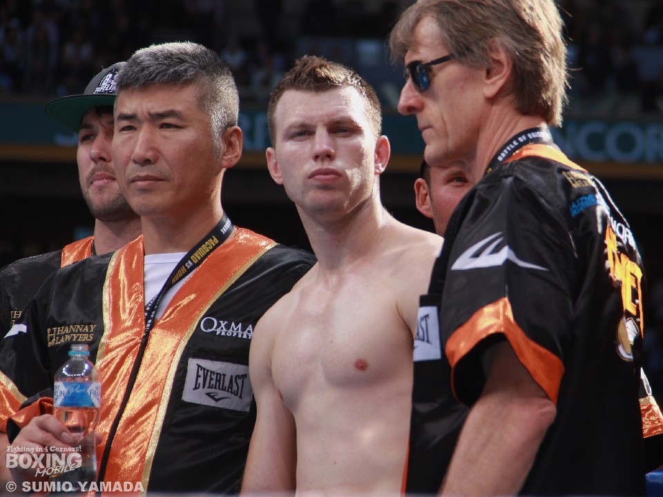 ミドル級リミットとなる72.5kgをホーンは300g少ない72.2kgでパス。対するザラファは400gアンダーの72.1kgでクリアした。ホーンにとっては年末に防衛戦を希望している、WBA世界ミドル級王者村田諒太(帝拳)への挑戦者候補に名乗り出るため落とせない一戦となる。