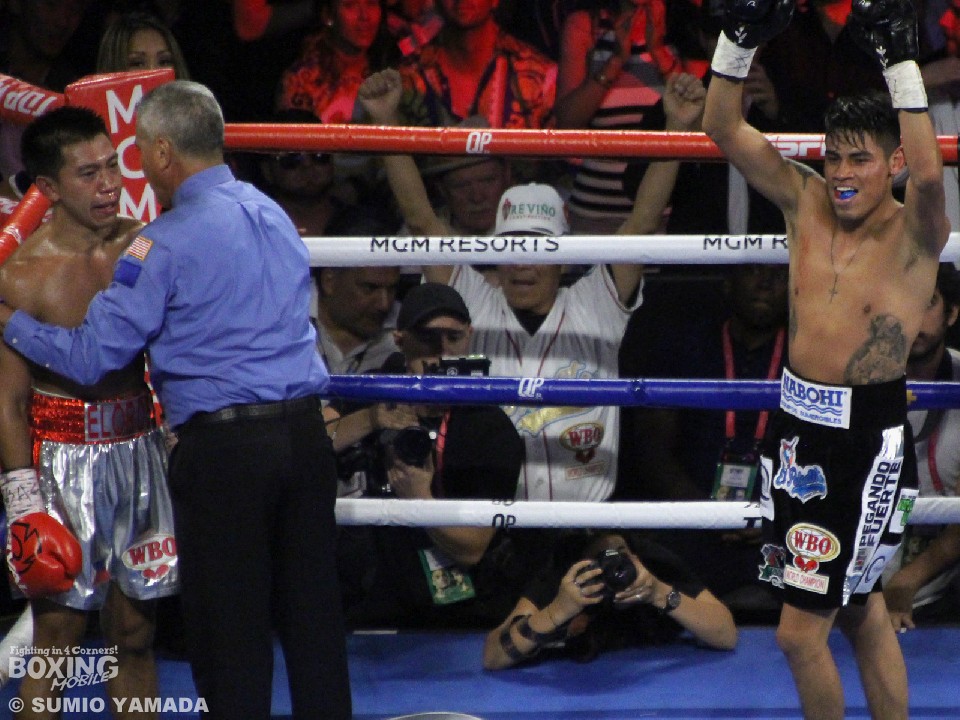 王者ナバレッテ、挑戦者エロルデともに冷静な様子見の初回から、2回にはエロルデが先に攻勢を仕掛ける。しかし、ナバレッテはスイッチを織り交ぜながら右を当ててコンビネーションで煽っていった。徐々にエロルデを下がらせたナバレッテは、3回に左フックから右ストレートでエロルデをロープに吹っ飛ばしロープダウンを奪った。そうして迎えた4回、果敢に出たエロルデをワンツーから右フックを炸裂させたところでレフェリーがストップ。4回26秒TKO勝利でラバレッテが3度目の防衛に成功した。